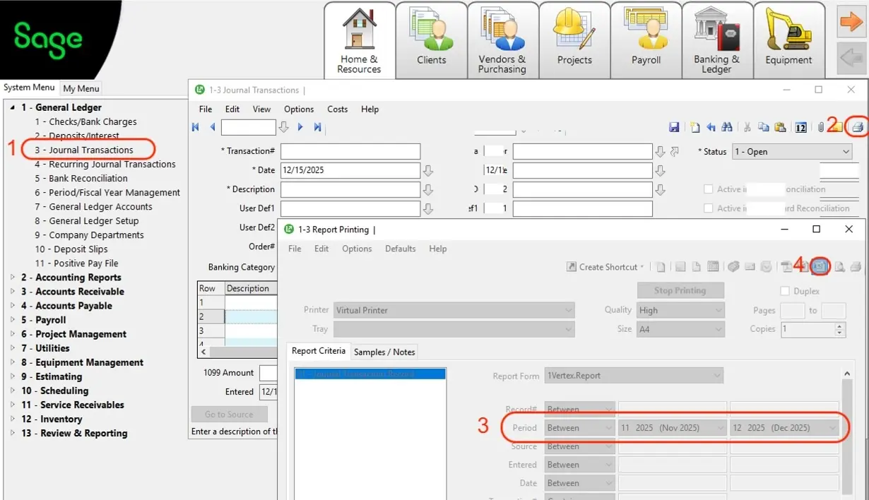 - Go to Tasks > 1-3 Journal Transactions.